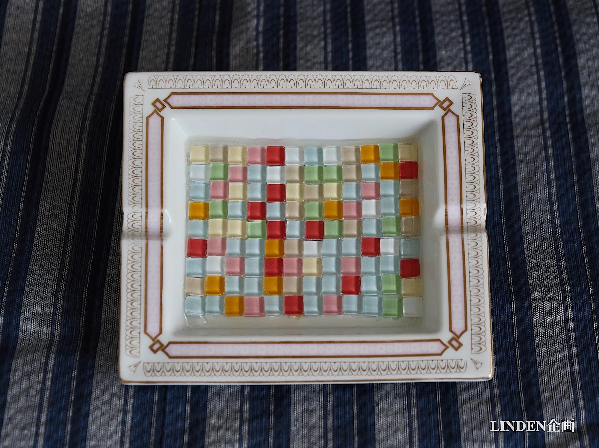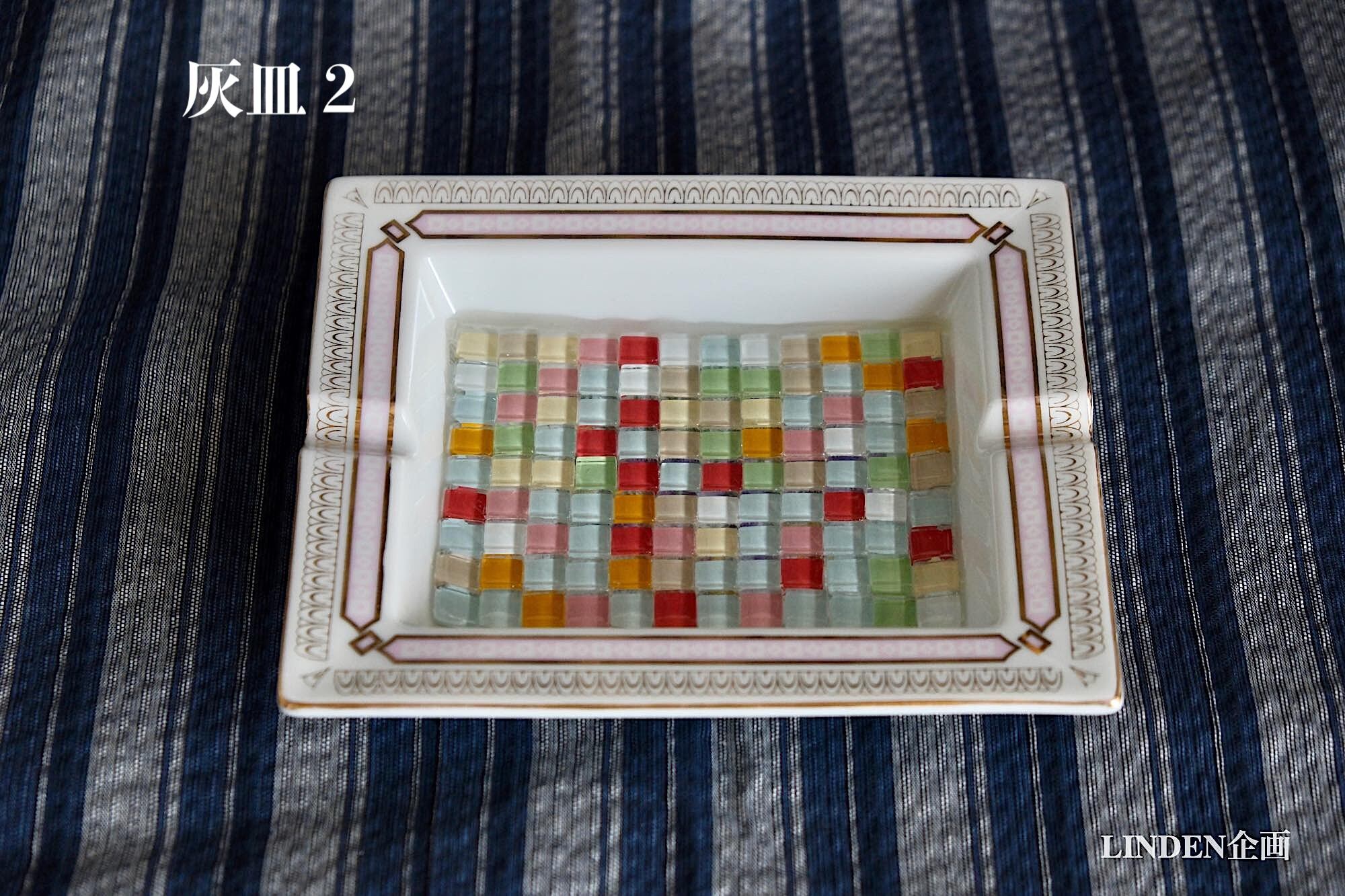 灰皿2:内面を1cm角のガラスモザイクタイルで充填しました。周囲にタイル固定用の透明な充填剤を入れてあります。重さ約660g
