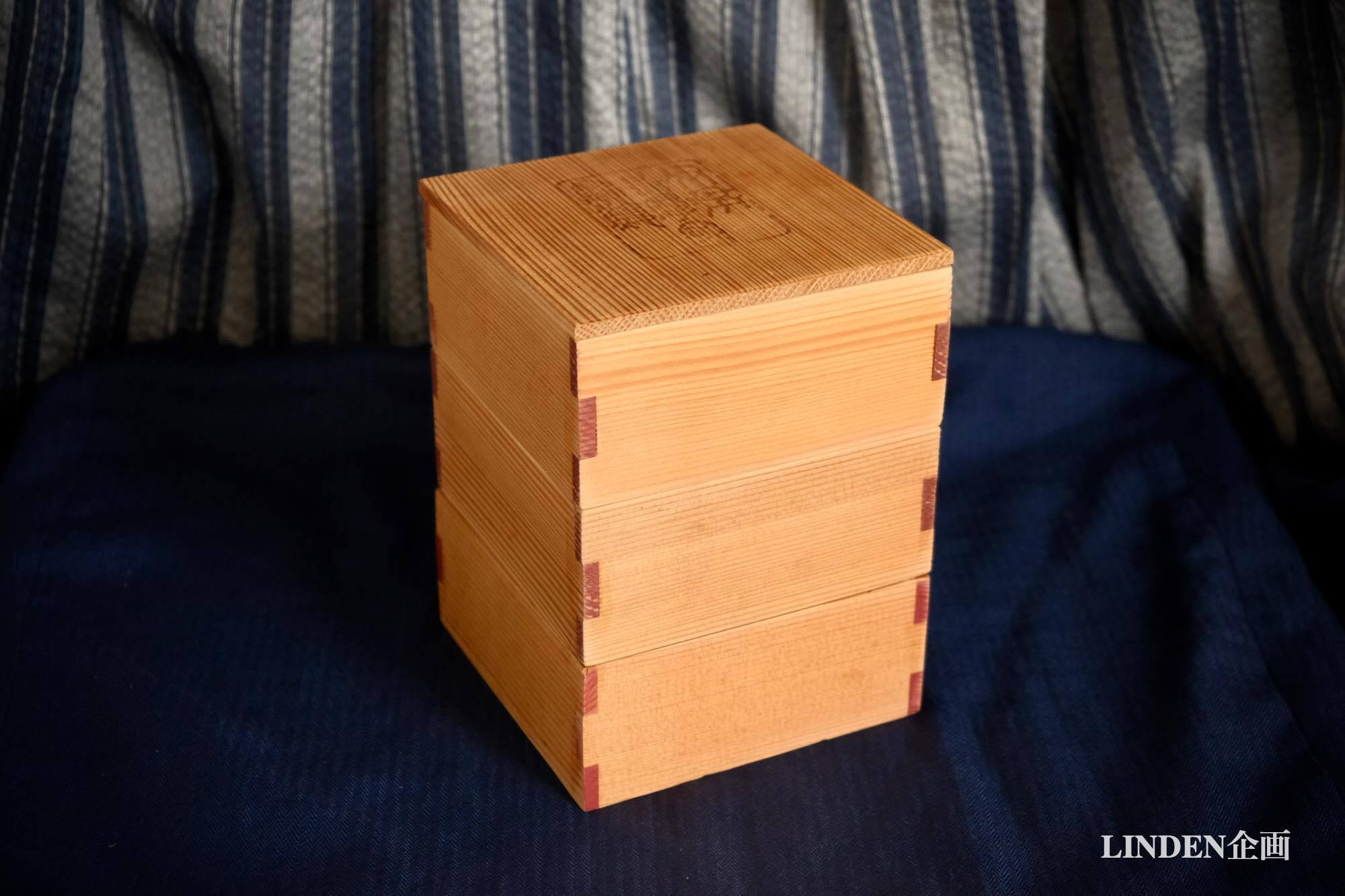 伊勢志摩産物の食品が入っていたと思われる、白木のミニ三段重です。
