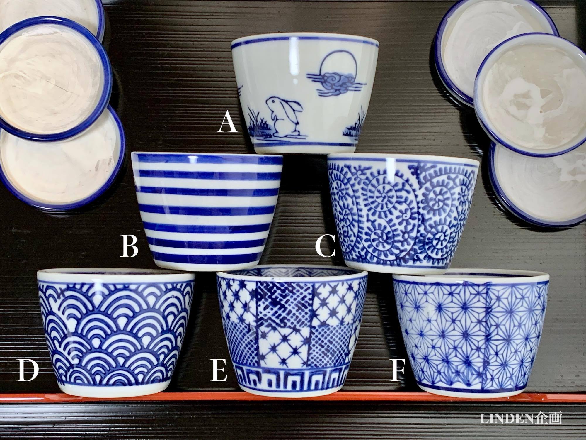 A~Fの6種類は各1個の出品で、鳥獣戯画文様のものは4個限定です。